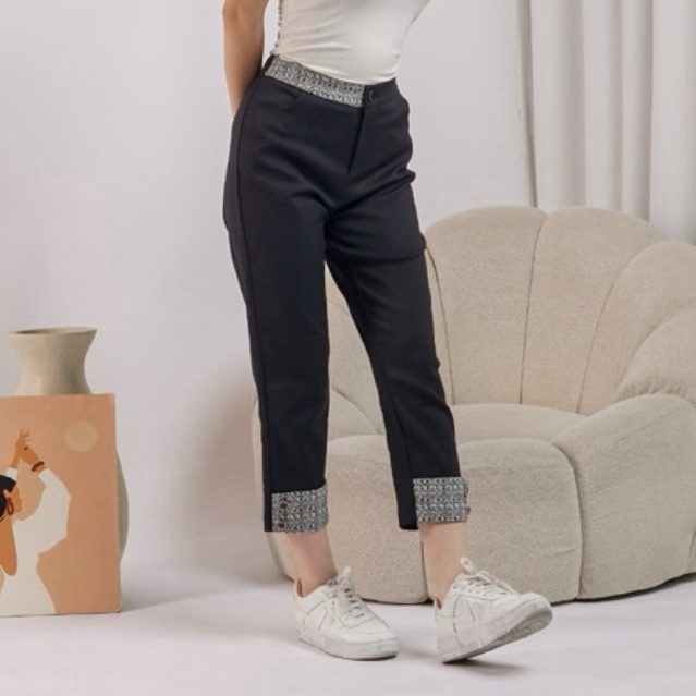 MILLIE SELENE | Ankle Pants LG Ellie Pants Cotton Stretch with Fabric Combination Women Pants Formal Pants Celana Wanita Celana Hitam Celana Semi formal