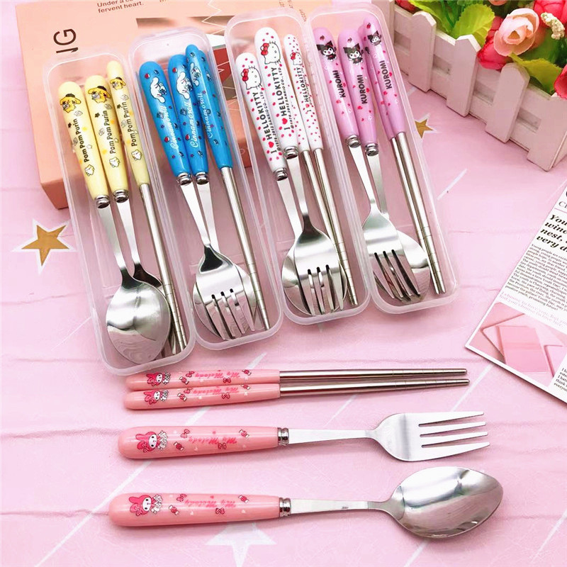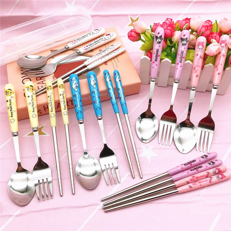 KMM ALAT MAKAN SET SENDOK GARPU SUMPIT STAINLESS STEEL PERALATAN MAKAN PLUS BOX KARAKTER ANAK SANRIO Murah Gratis Ongki