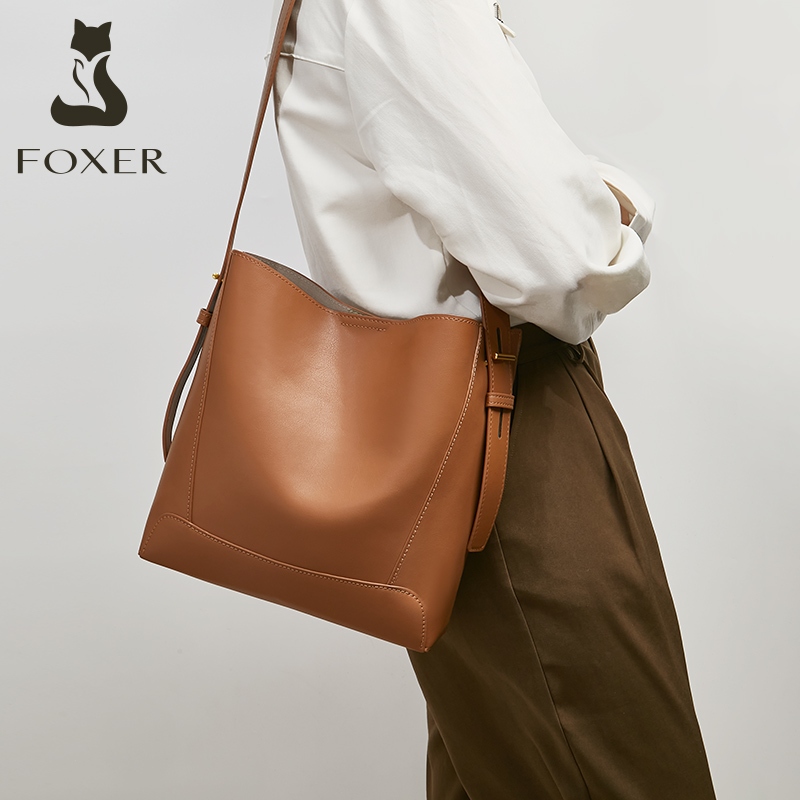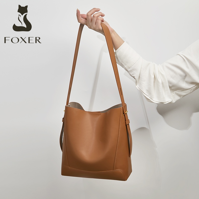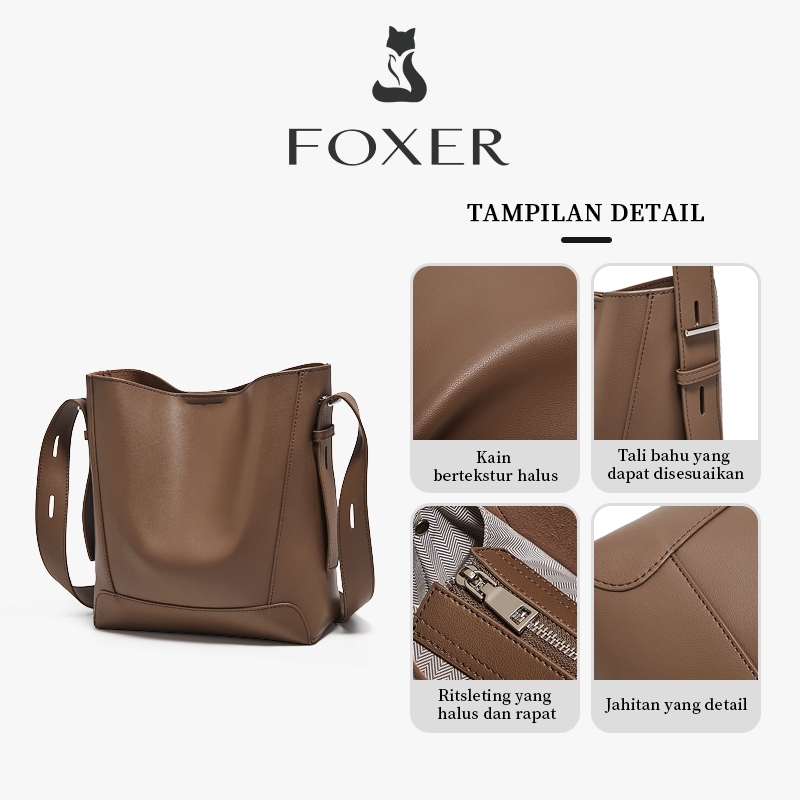 FOXER Tas Bahu Kulit Asli Wanita Tas Selempang Yang Stylish dan Simpel Tas Tangan Berkapasitas Besar
