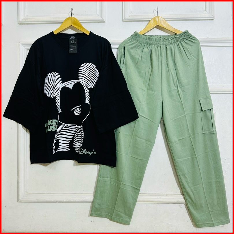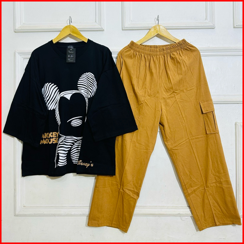 Setelan Baju Kaos Jumbo Combed Wanita Dewasa Motif Sablon Plastisol Terpopuler