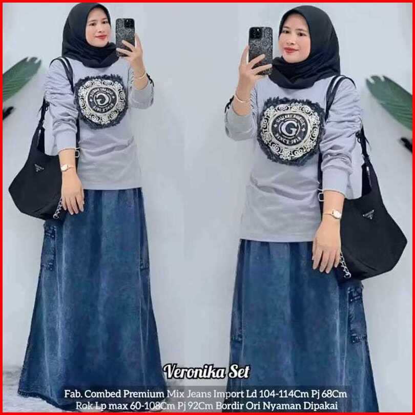 Lovila Setrok Setelan Ukursn Standar Jumbo Setelan Rok Jeans Arasan Combrt 24s Setelan Kekinian Terbaru Best Seller
