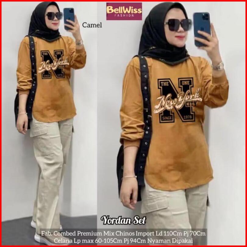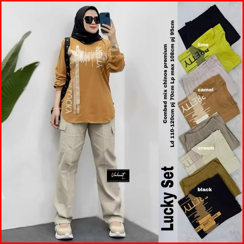 Setelan Chinos Ukuran Jumbo Dan Standar Wanita Dewasa Atasan Combed 24s Celana Kulot Chinos Cargo Setelan Wanita Terlari