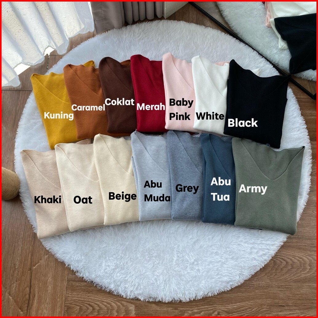 Mfm Women S Knitwear V-neck 337 Stretchable Rajutan Wanita Melar Lembut Atasan Rajut Cewek