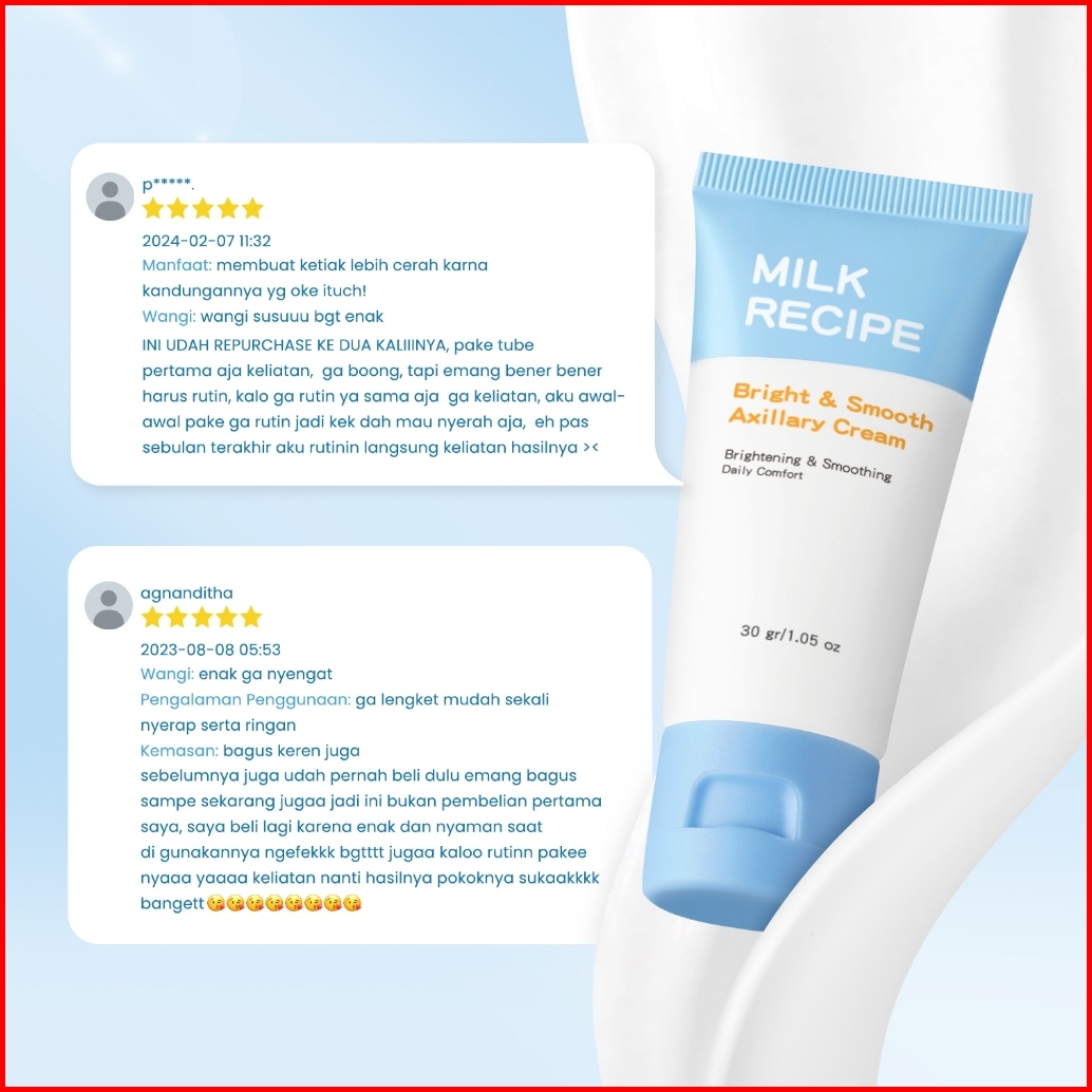 Milk Recipe Bright Smooth Axillary Cream - Krim Pencerah Ketiak Selangkangan Bokong Dan Lipatan Hitam Dengan Niacinamide