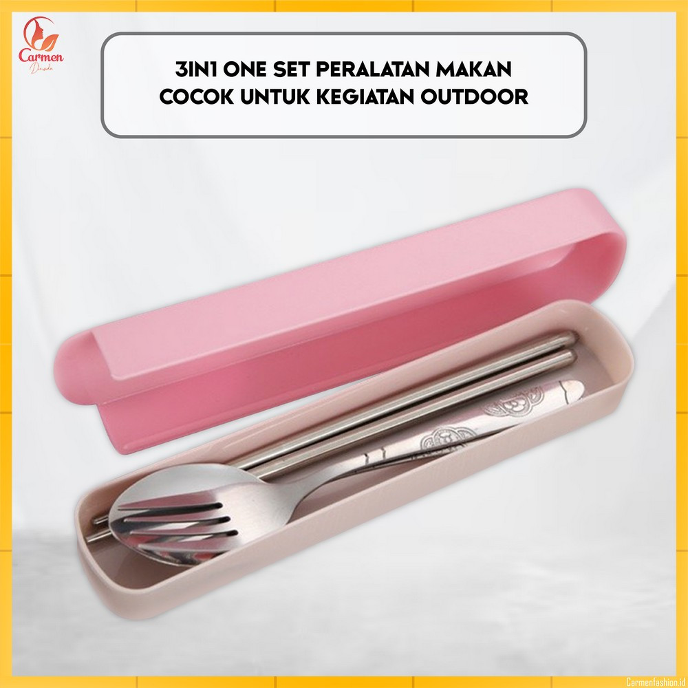 Sendok Dan Garpu Set Sendok / Peralatan Makan Stainless Steel Traveling 3IN1 Include Kotak CF C495 Murah Gratis Ongkir G