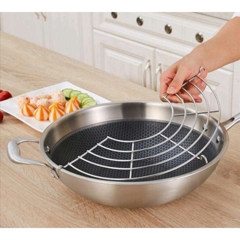 harga promoTatakan Panci wajan teplon saringan minyak stainless steel/ alat peniris gorengan /makanan