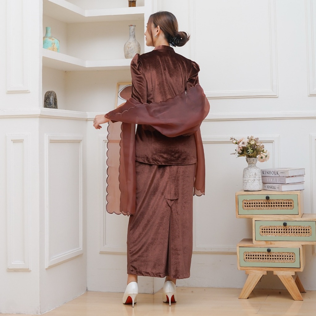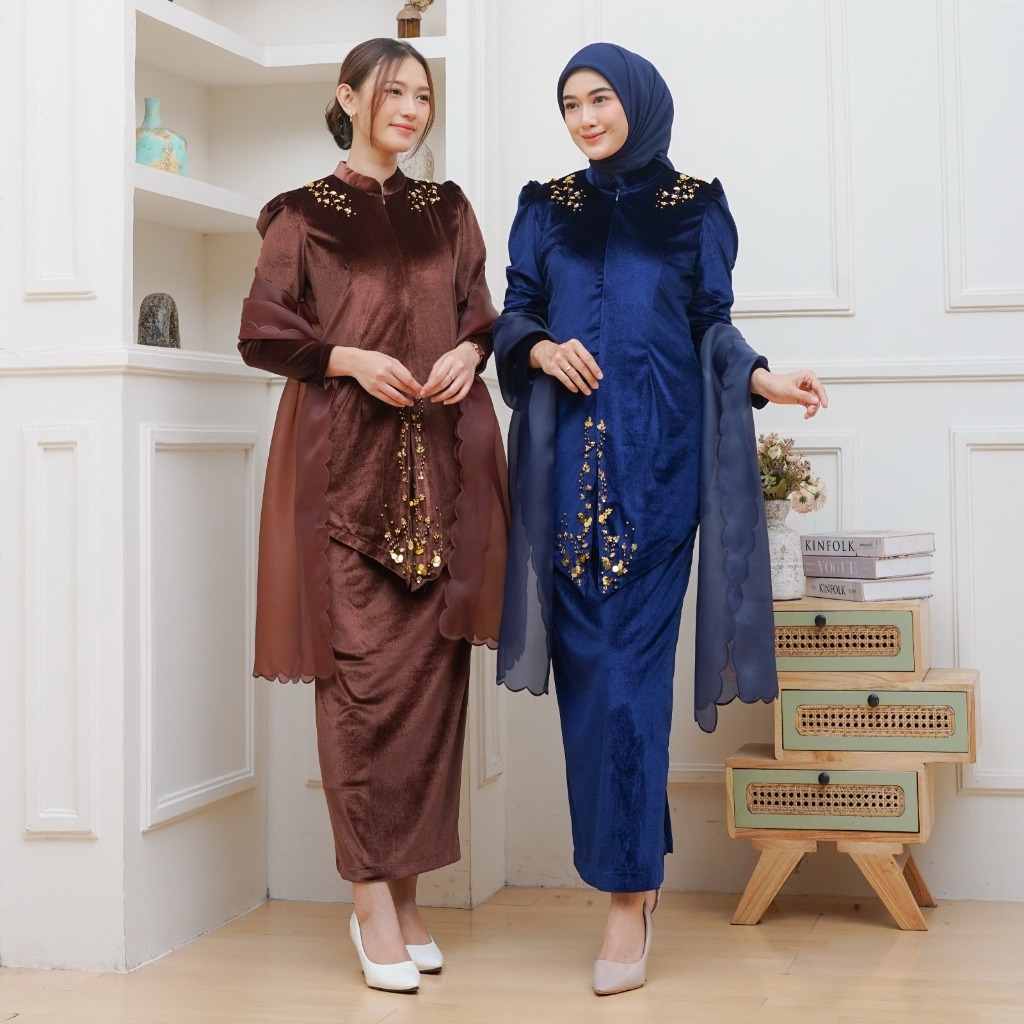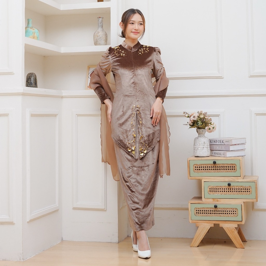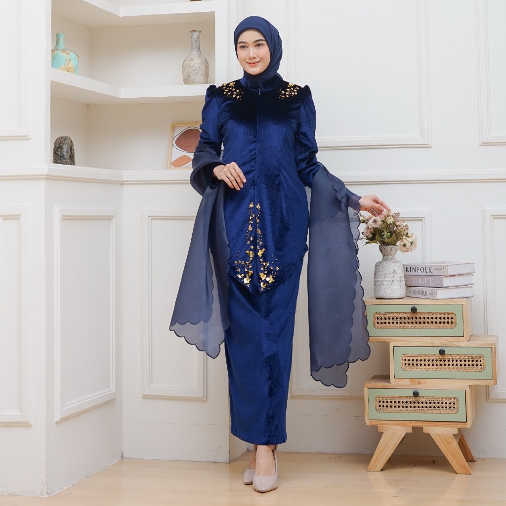 Batik Rais-Melur Oneset Selendang Kebaya Wanita Pesta Kondangan Payet Baju Akad Melayu Bludru Mewah