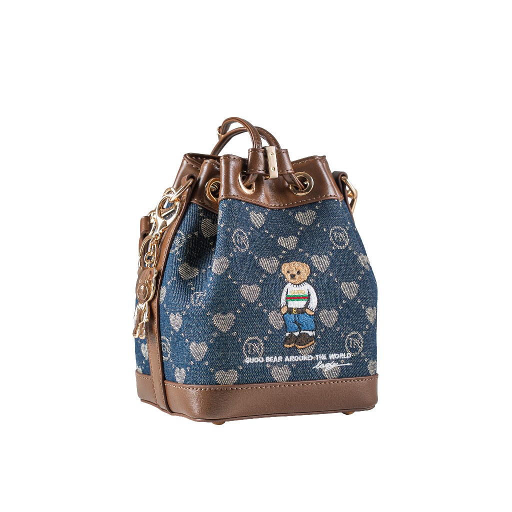 Luxelabels - GUOO Bear Tas Bucket Serut Wanita Ukuran S Tas Selempang Motif Beruang