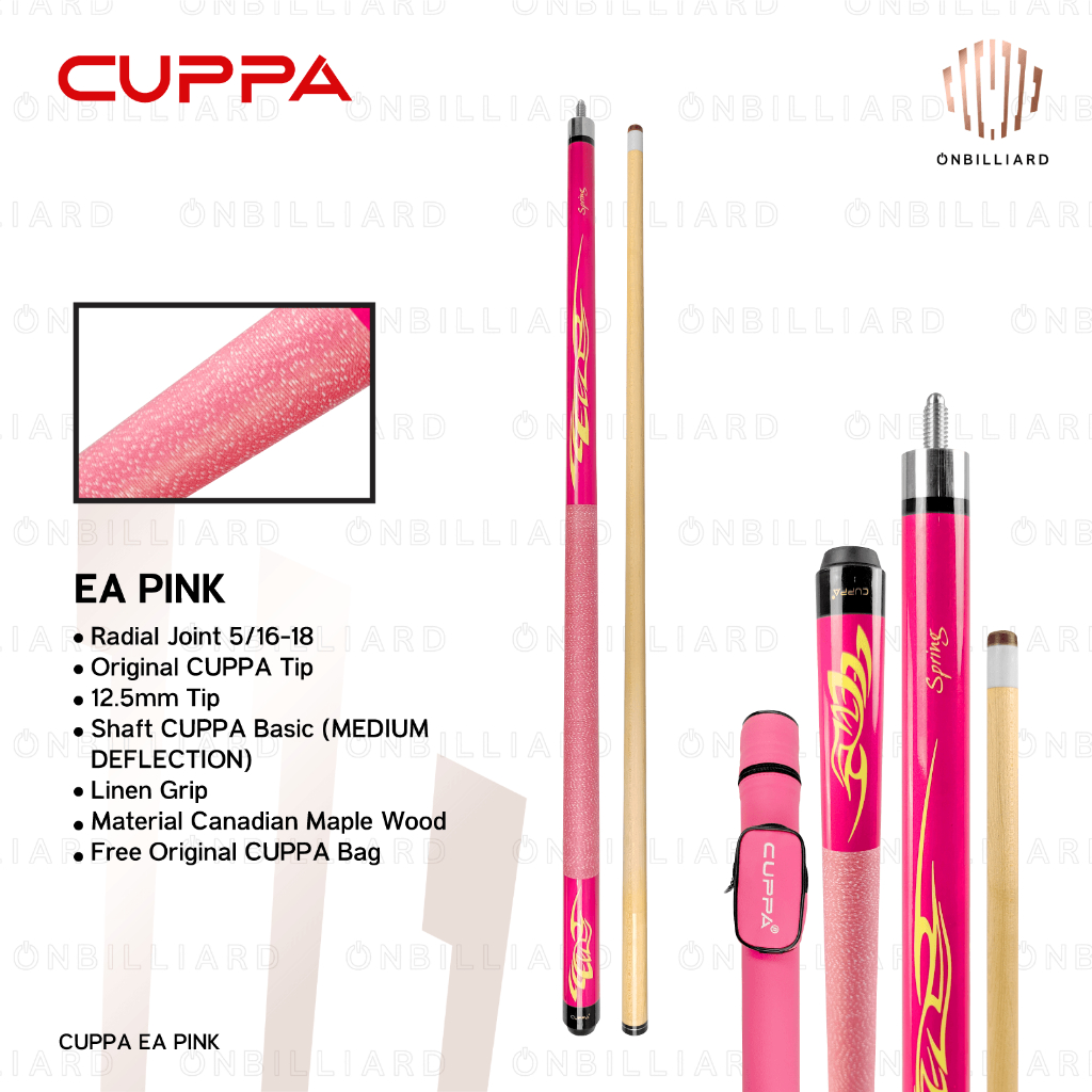 Cuppa Pink EA Cue Stick Play Billiard Stik Biliar 12.5mm Girl Cewek