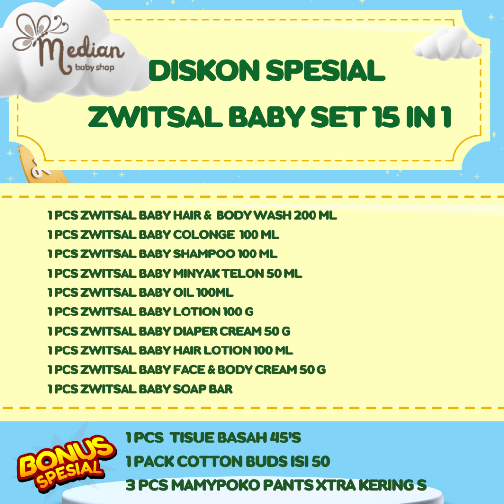 ZWITSAL BABY SET 15 in 1 PAKET Perawatan Bayi baru lahir Komplit Perlengkapan Mandi, Kado Lahiran