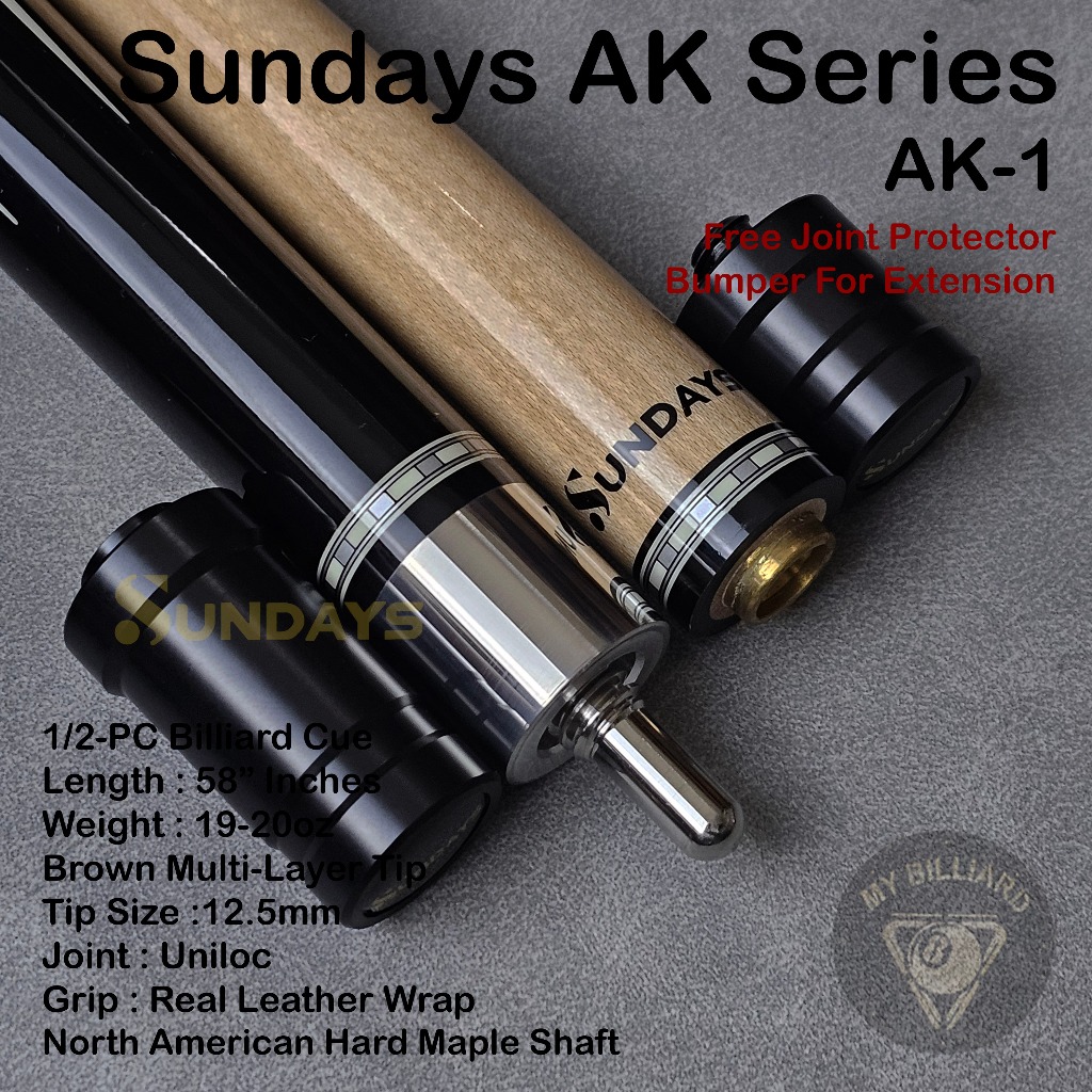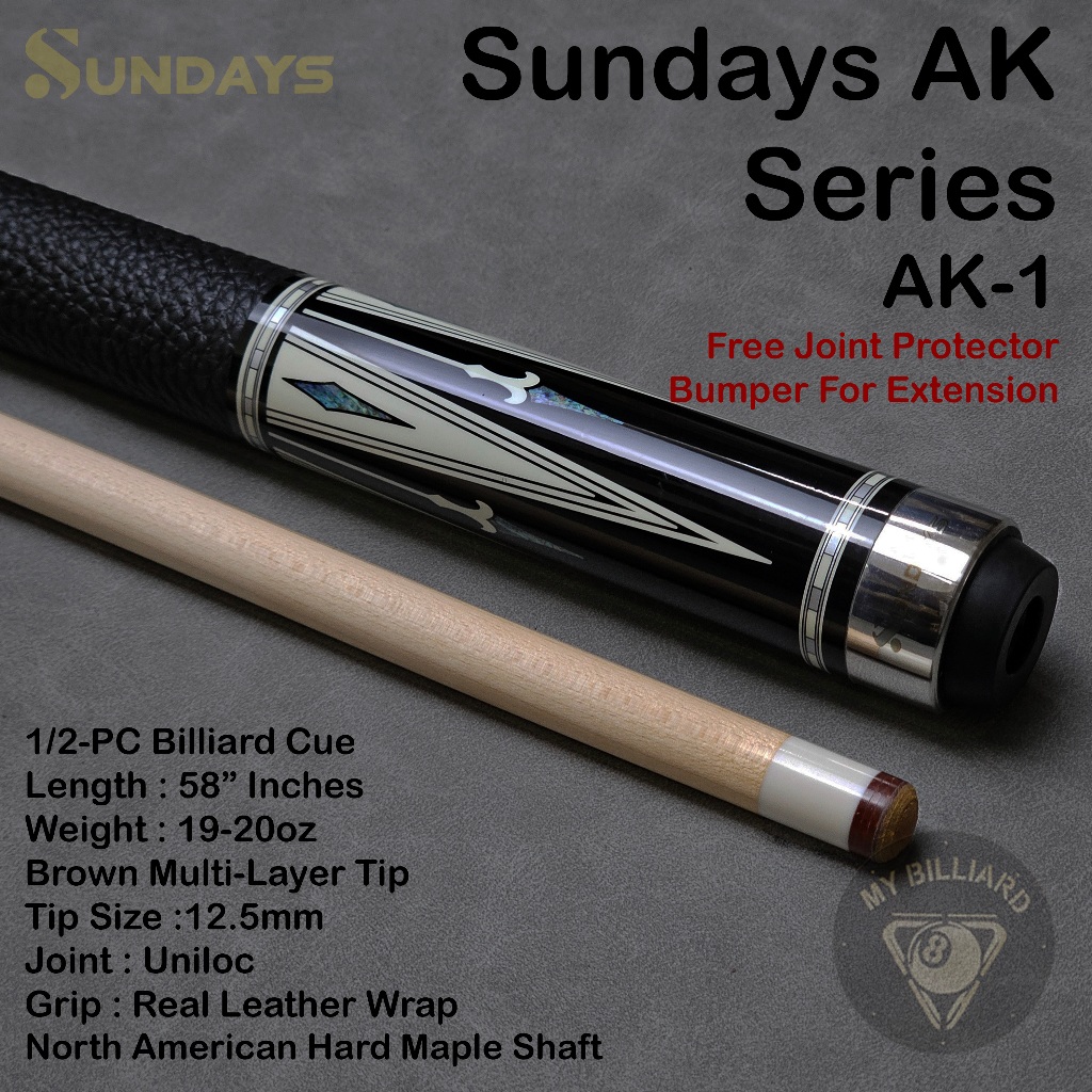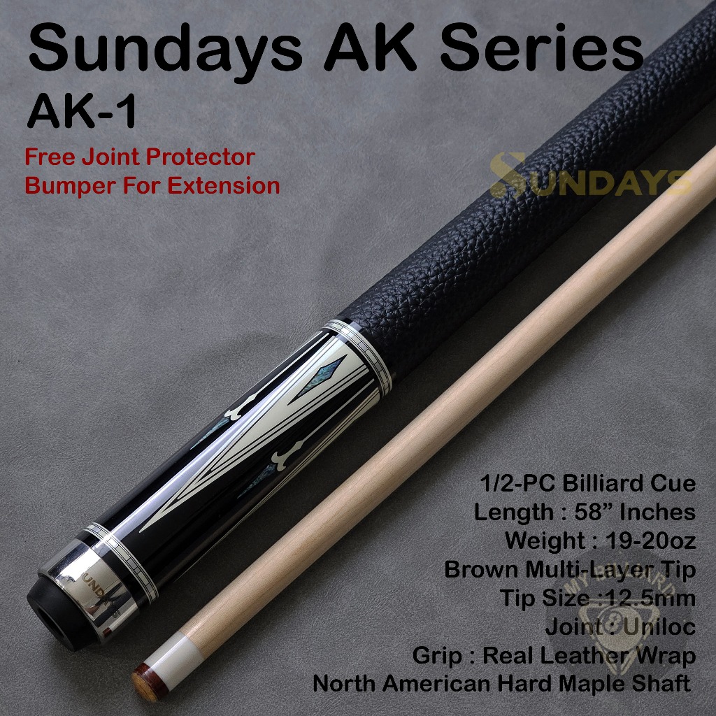 Stick Billiard Sundays AK-1 12.5mm Uniloc - Leather Grip - Stik Billiar Sundays AK 1 bukan Fury ak