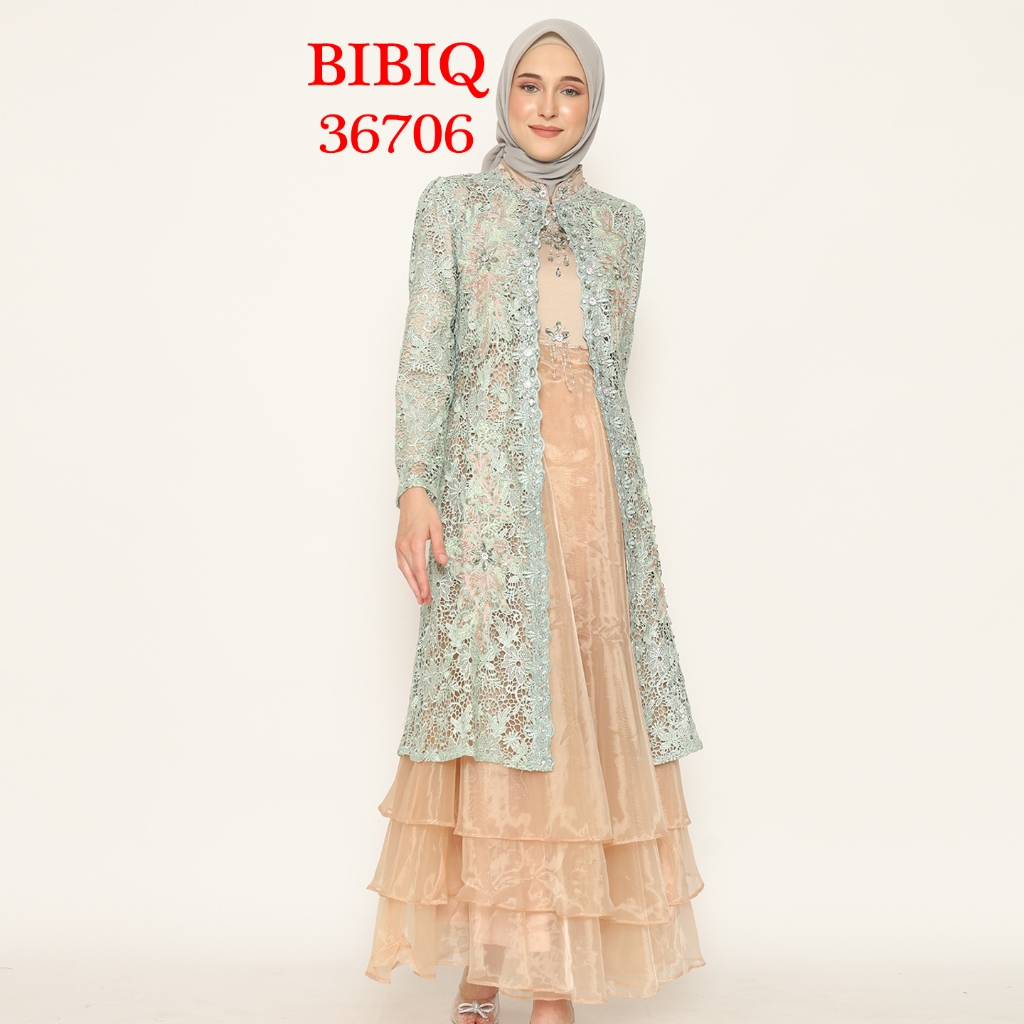 Gamis Pesta Baju Muslim Mewah BIBIQ Terbaru Bahan Brokat Satin Organza 36706