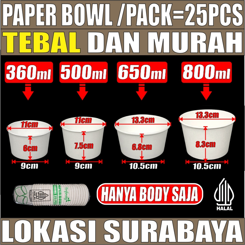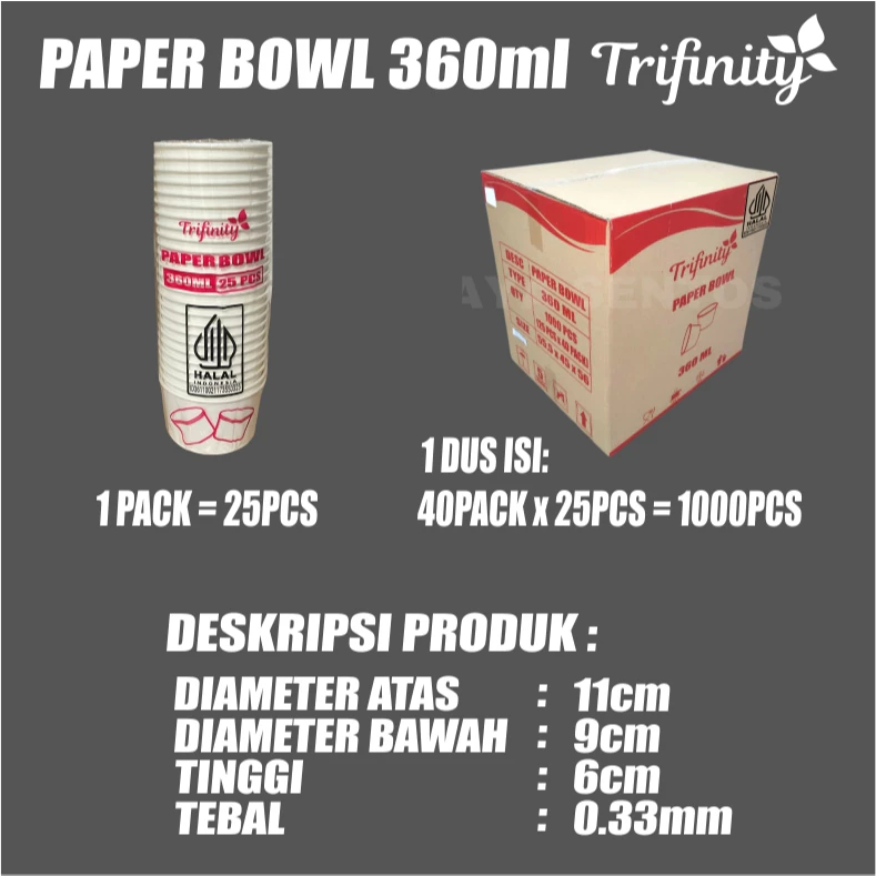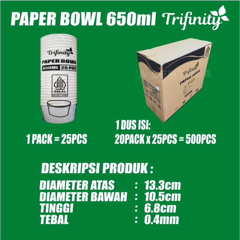 Trifinity Paper Bowl HALAL Tebal Aman Bocor Uk Real 360ml 500ml 650ml 800ml Pack Mangkok Kertas SBY Murah Gratis Ongkir