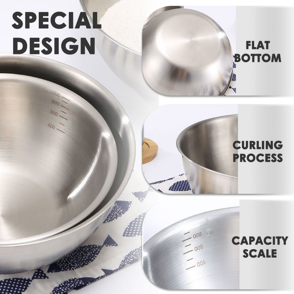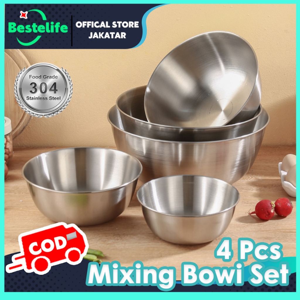 Mixing Bowl Super Dalam baskom stainless / Mangkok Adonan Stainless 4 pcs 17cm-25cm Murah Gratis Ongkir Garansi Pengirim