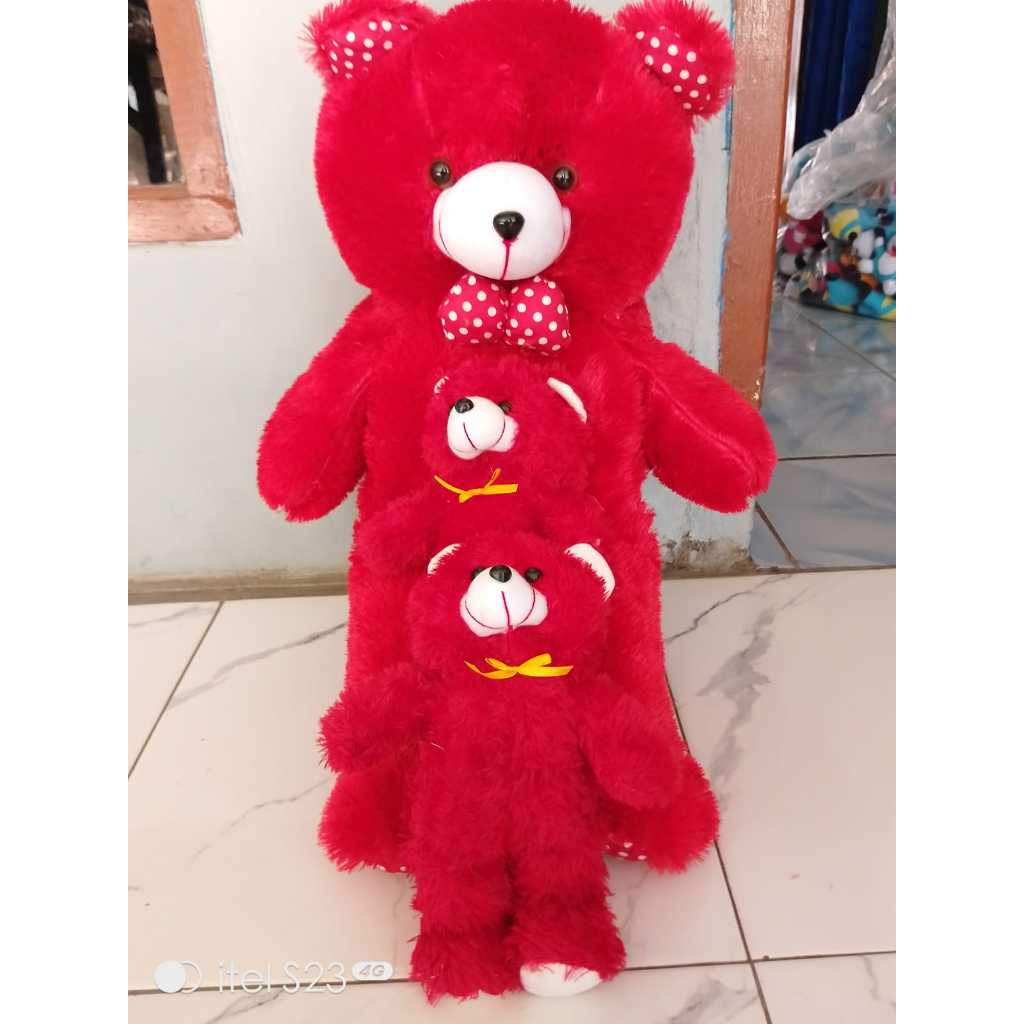 Paket boneka teddy bear jumbo 70cm beranak 2 1 besar 2 kecil