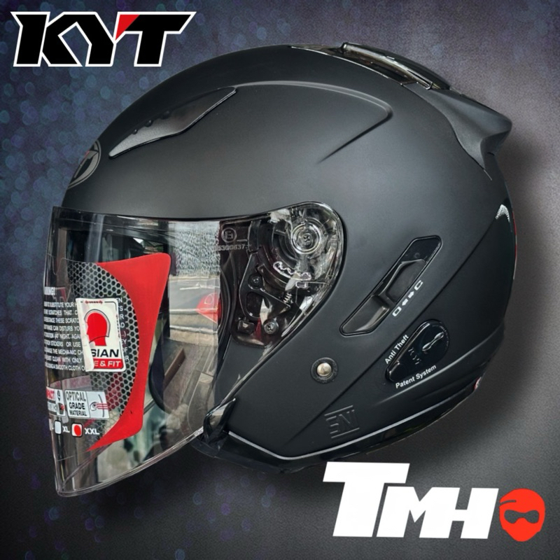HELM KYT GALAXY FLAT R SOLID BLACK DOFF HITAM DOF DOUBLE VISOR Half Face