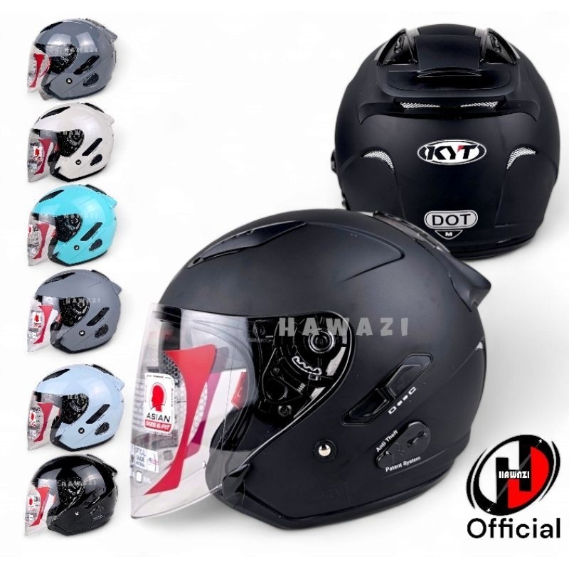 Helm Half Face KYT Galaxy Slide Flat R SOLID Double Visor Original White Black Gunmetal Steel Blue Aqua Gorilla Grey Mat