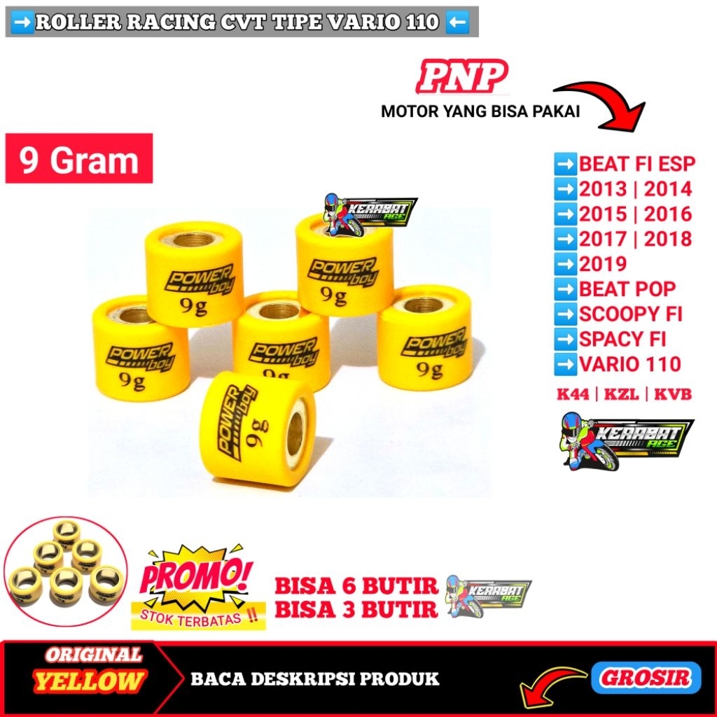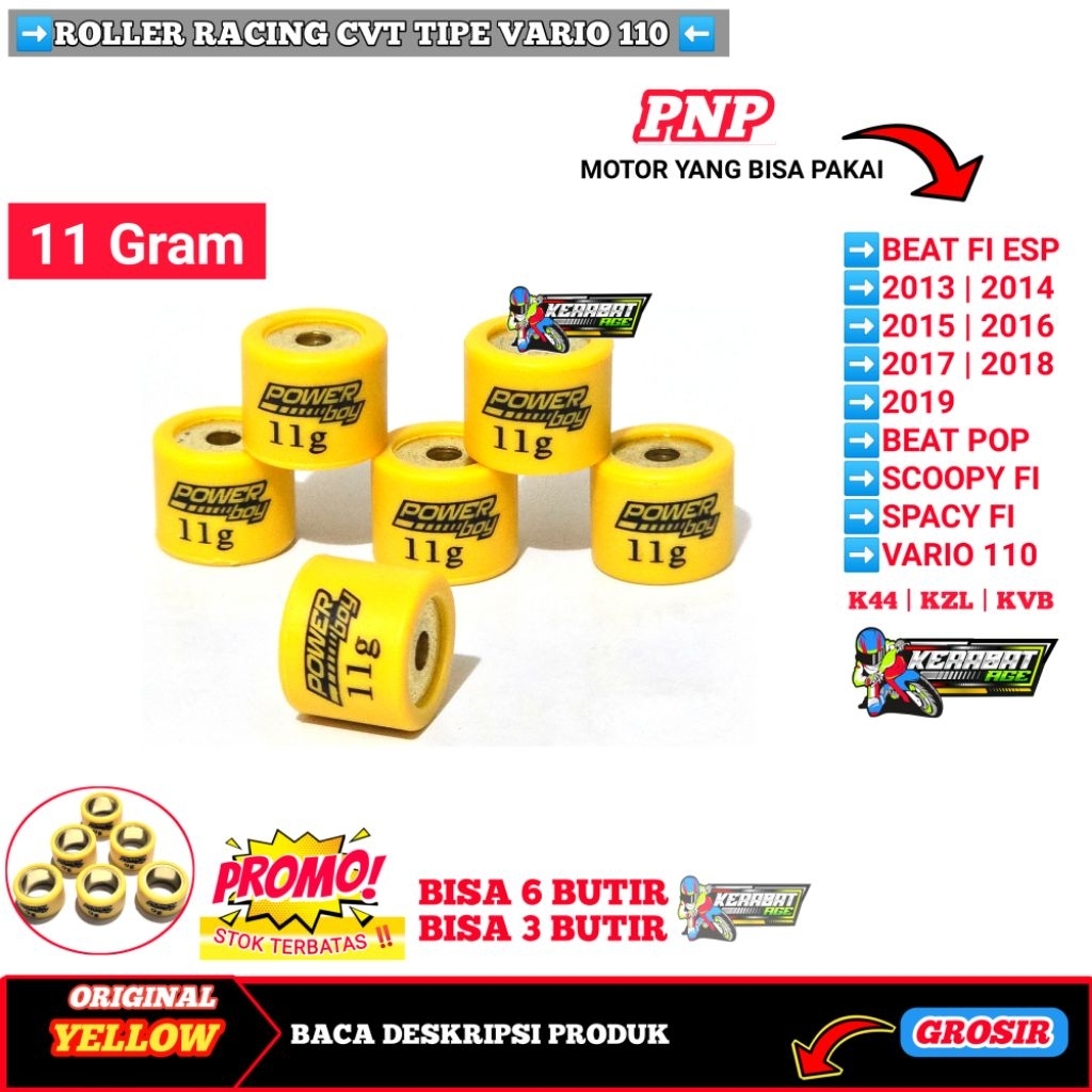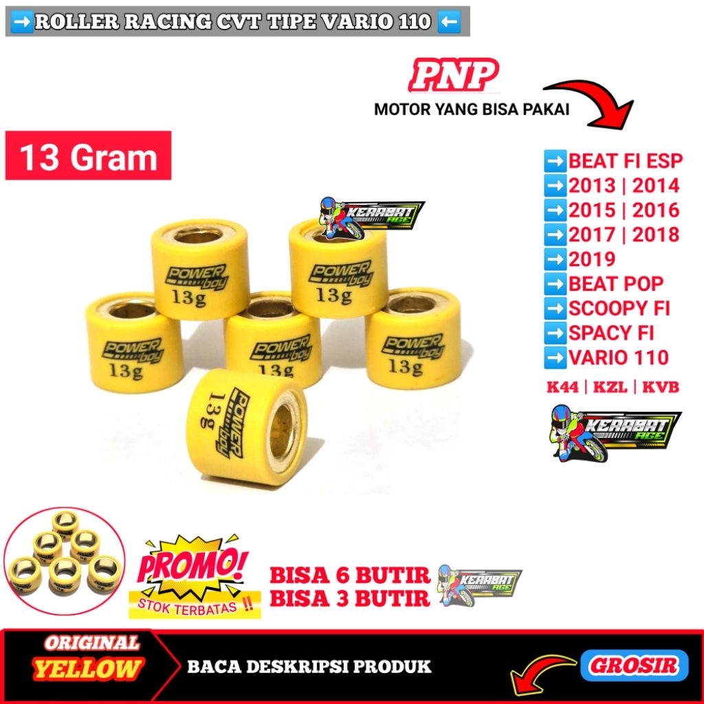ROLLER (YELLOW BF) ROLER LOLER RACING BEAT Fi Esp SCOOPY SPACY VARIO 110 KARBU FI 6 7 8 9 10 11 12 13 14 GRAM GR OR
