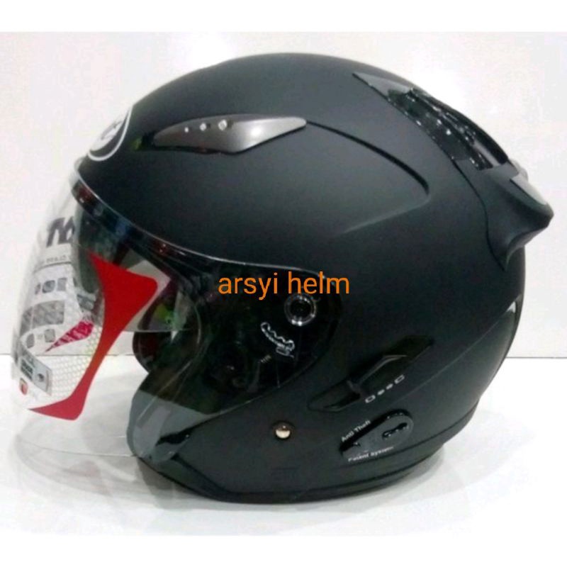 KYT GALAXY FLAT R BLACK MATTE SOLID ORIGINAL DOUBLE VISOR HELM HALF FACE KYT GALAXY FLAT R HITAM DOFF ORI SNI DOT