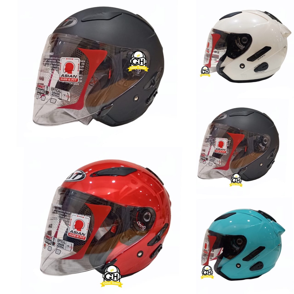 Helm KYT Galaxy Flat R Waves Black Gunmetal Halfface Double Visor