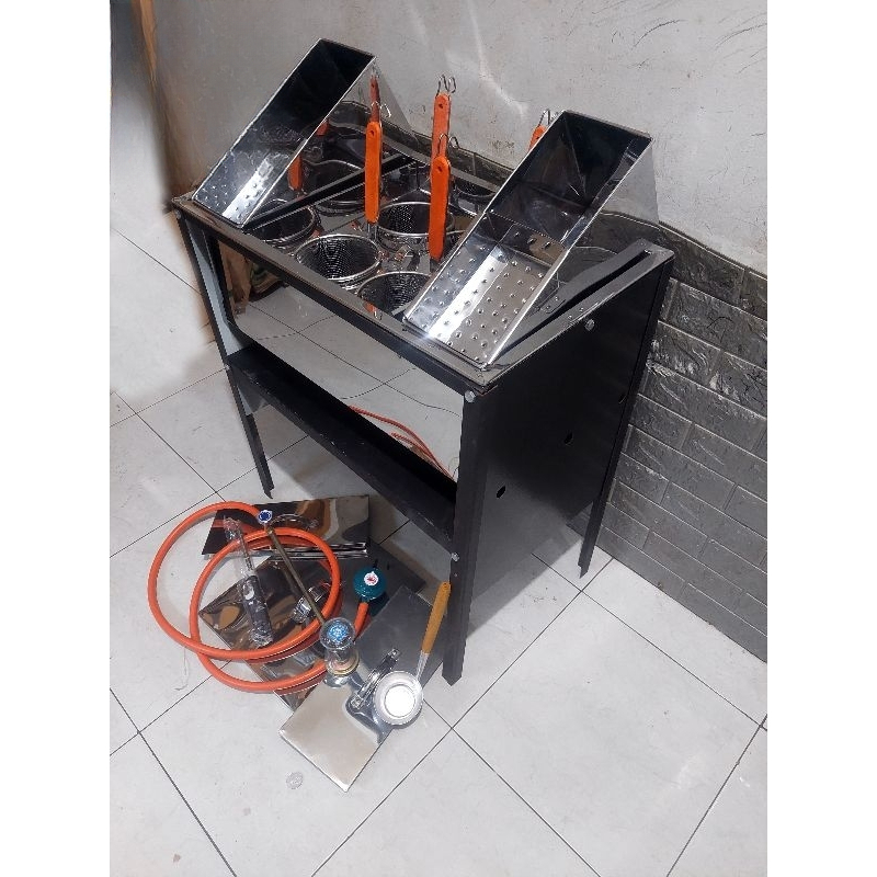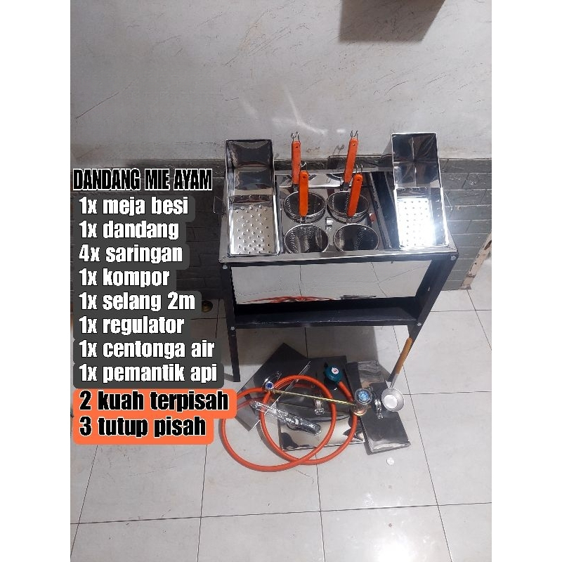 Dandang Mie Ayam 4 Lubang 2 kuah Set Lengkap/ Tong Mie Ayam/Panci Mie Ayam 2 kuah