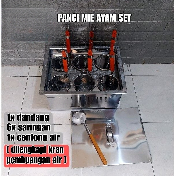 Dandang Mie Ayam Lubang 6 Stainless Lengkap / Panci Mie Ayam / Tong Mie Ayam