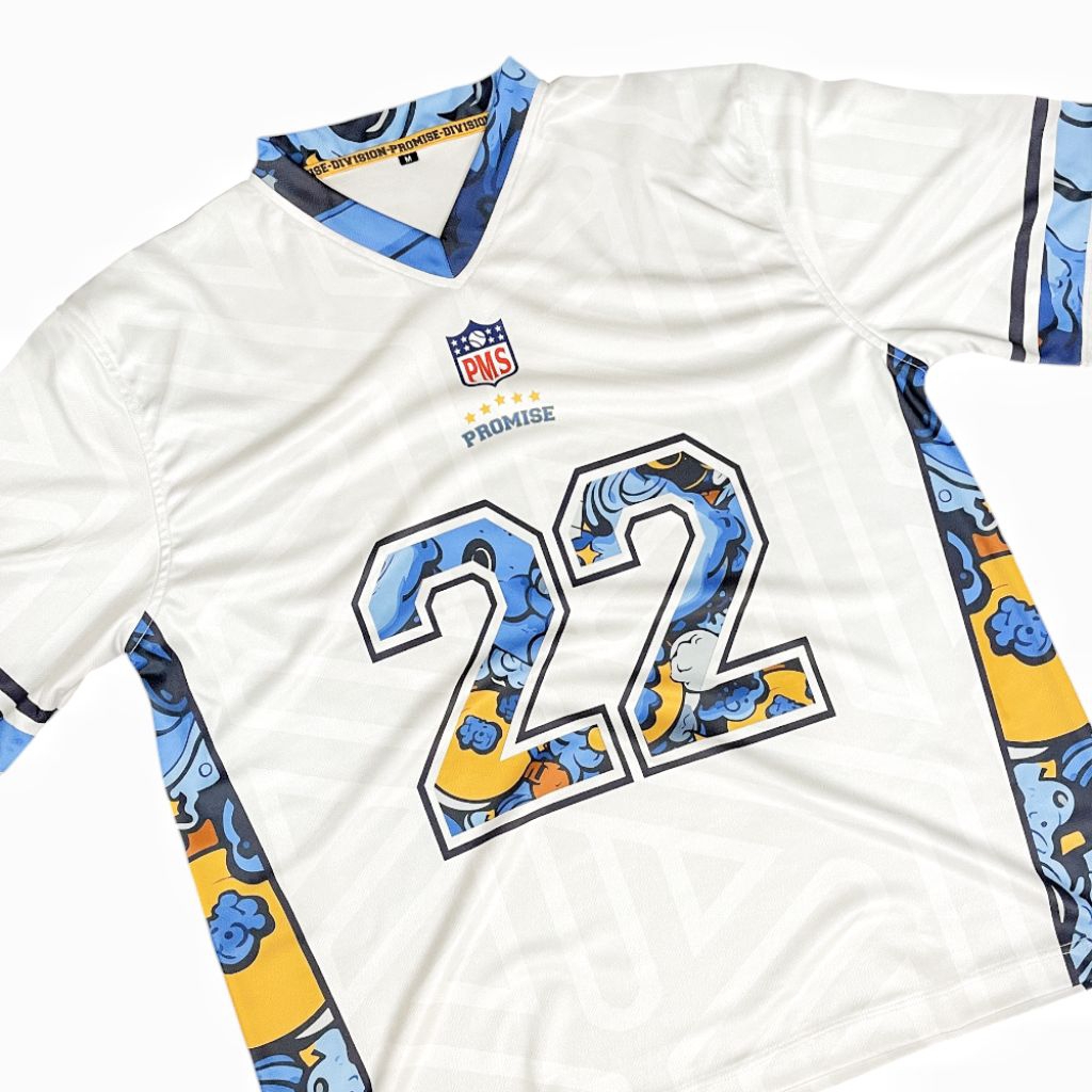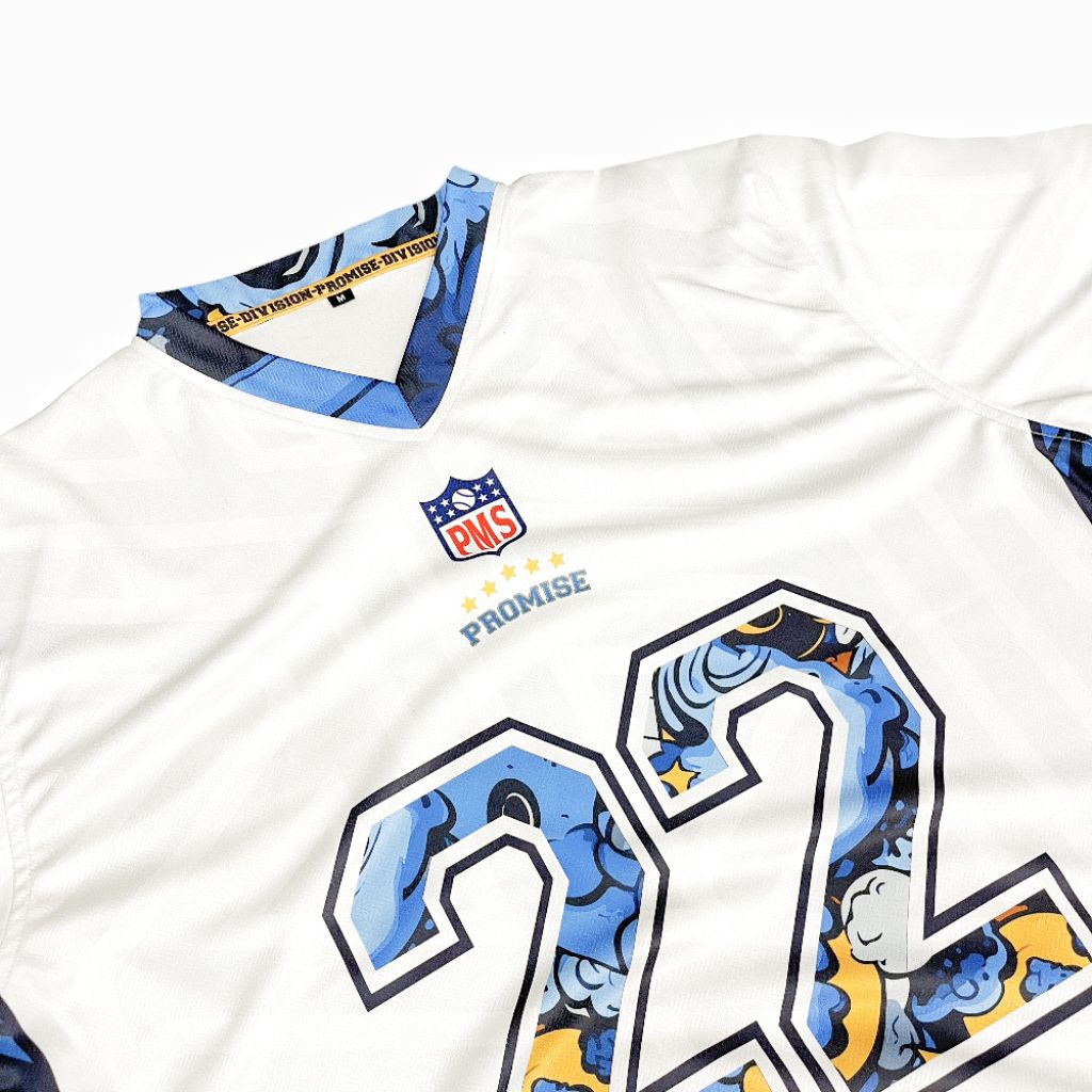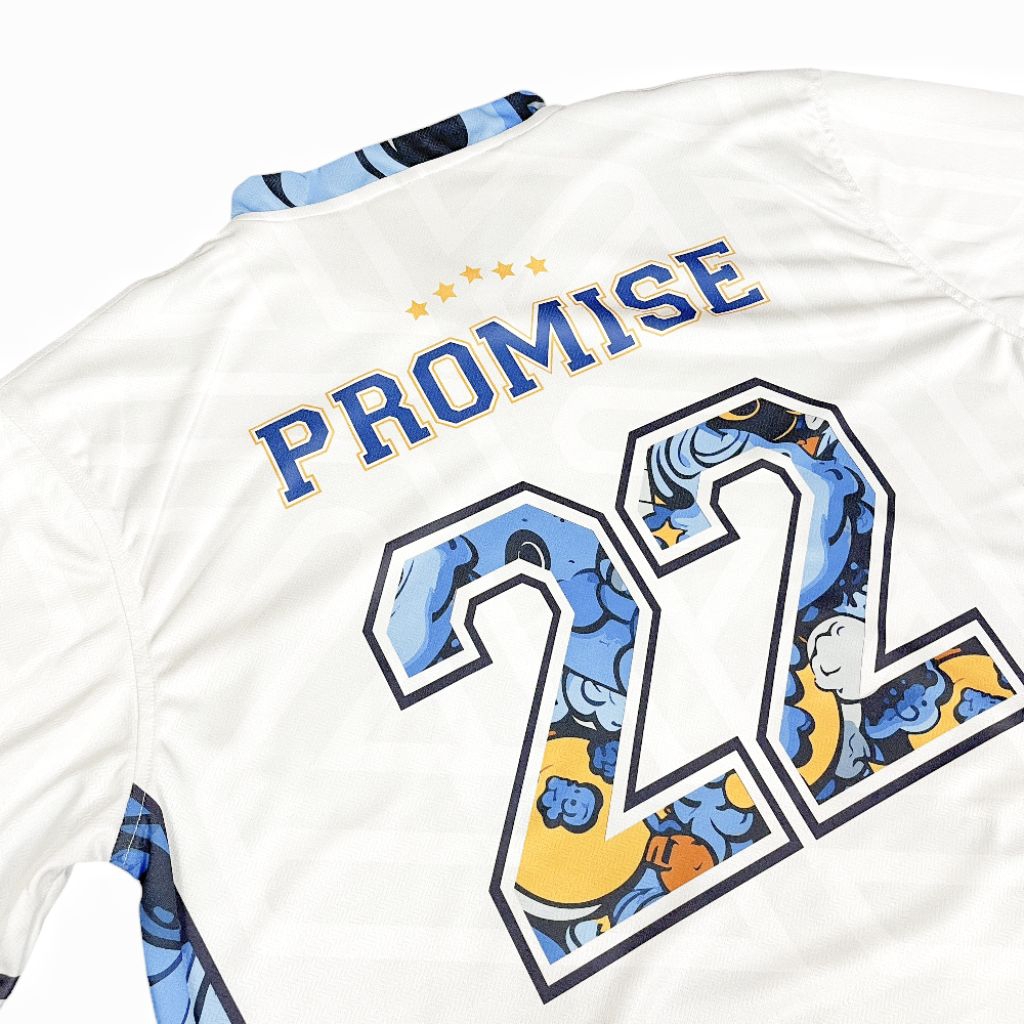Jersey Boxy Oversize Jumbo PROMISE 22 White Blue Vintage Unisex Pria Wanita Sport Big Size