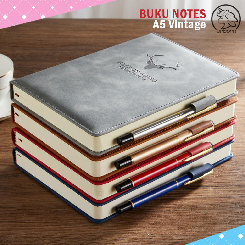 BUKU NOTES Aesthetic A5 100 Lembar Cover Leather Vintage | Notebook | Jurnal | Meeting | Planner | Catatan