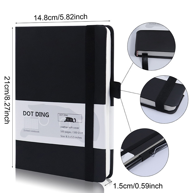 [DOTDING] Buku Catatan Bertitik A5 Sampul Lembut Kulit Kertas Tebal 100GSM 160 Halaman Sederhana untuk Siswa Perlengkapa