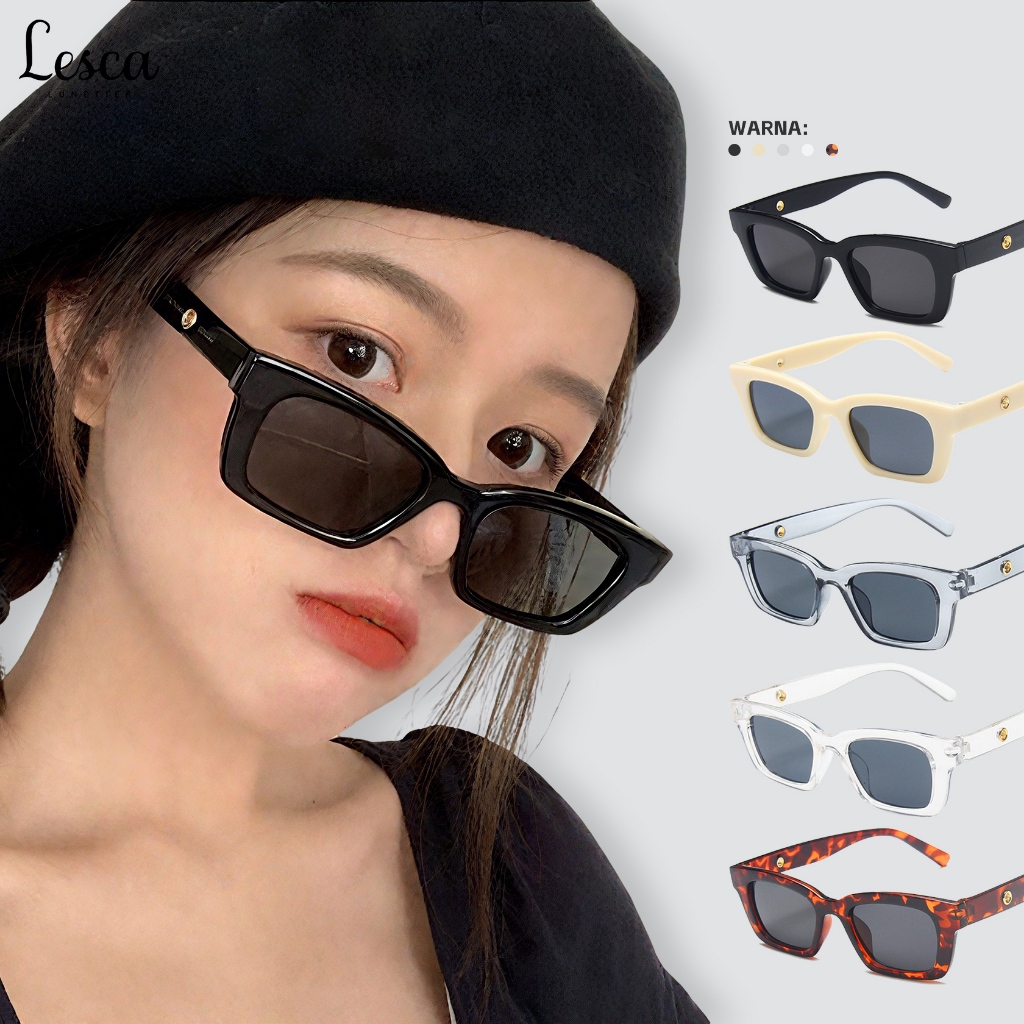 Lesca Kacamata Hitam Anti Persegi Model Retro Sunglasses Trendy / Kacamata Lensa Anti UV Pria Wanita Fashionable