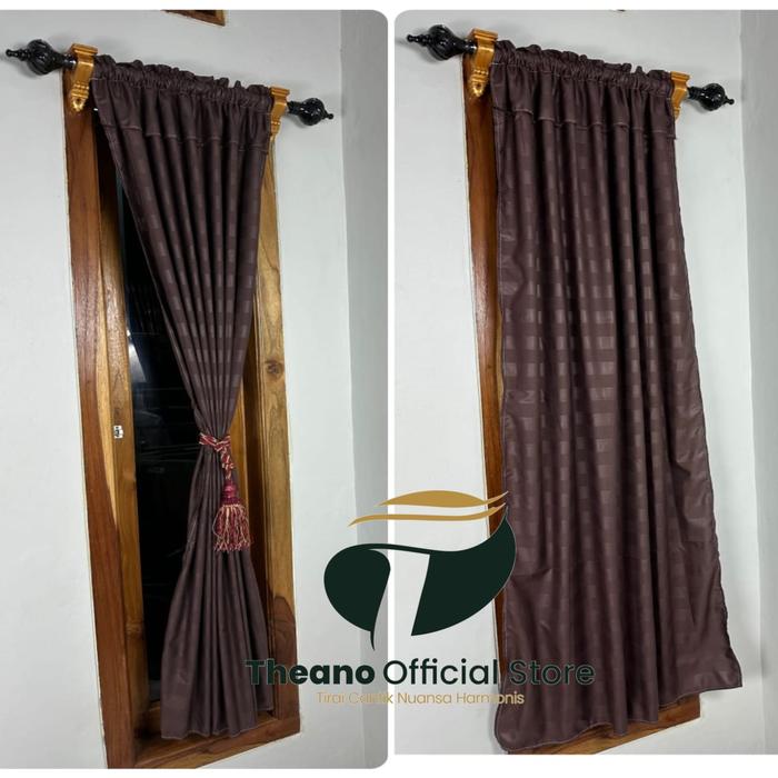 Murah Gorden Jendela Model Serut Motif Embos Salur Ukuran 80x165cm Curtain Estetik - EMBOS HITAM Keren