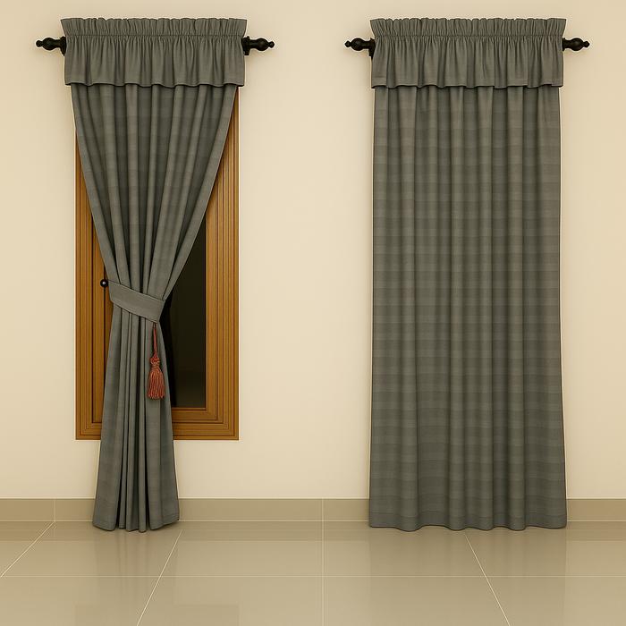 Murah DRAPIQ-Gorden Jendela Model Serut Motif Embos Salur Ukuran 80cmx165cm Bahan Poliester Premium - EMBOS HITAM Elegan