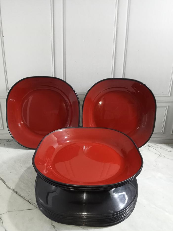 Terlaris (12 PCS) Piring Ramen Segi Serbaguna Piring Plastik Ramen Merah Viral Kitchenware - PIRING RAMEN 6PCS Elegan