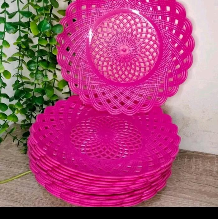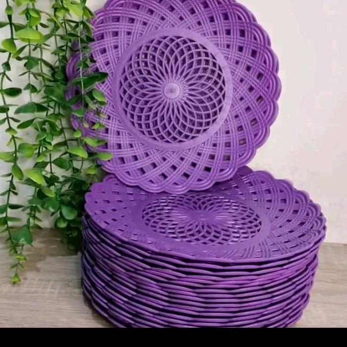 Terlaris Piring Rotan Plastik diameter 24 cm - biru 24 pc Elegan