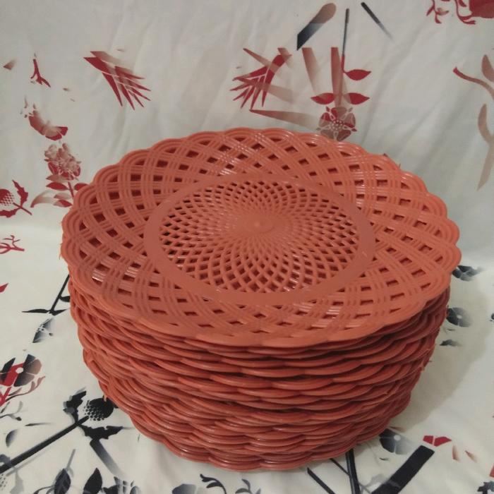 Terlaris Piring Rotan Plastik PAKET 2 LUSIN 24 PCS - Oranye 24 PCS Elegan