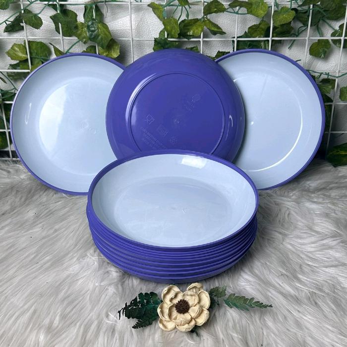Terlaris Piring Makan Plastik 2 Warna Lusinan - Piring Ungu 12 Pcs Keren