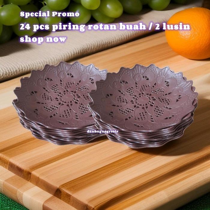 Promo Harga grosir 24 pcs piring rotan buah 2 lusin bahan plastik Makan Kitchenware - 2 LUSIN PIRING ROTAN CANTIK Keren