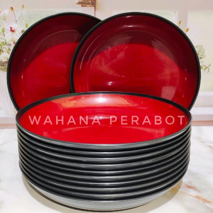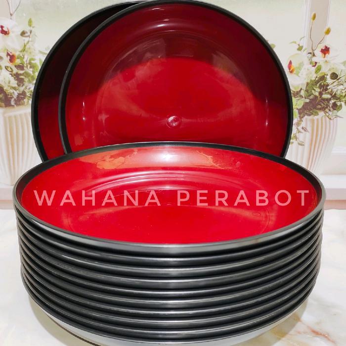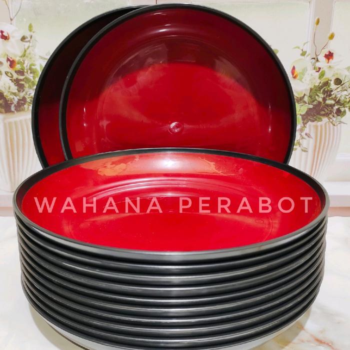 Terlaris PROMO 1 LUSIN PIRING MAKAN BESAR BAHAN PLASTIK TEBAL PREMIUM KUALITAS TERBAIK TAHAN PANAS - ISI 12 PCS Keren