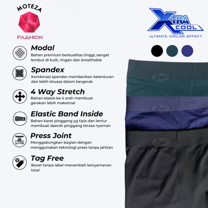 WAJIB PUNYA ! RIDER XTRACOOL R803B R 803 B CELANA DALAM CD PRIA BOXER SEAMLESS MODAL SPANDEX - ISI 1 PCS - NAVY, M ORI