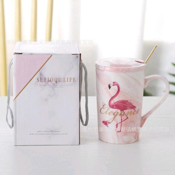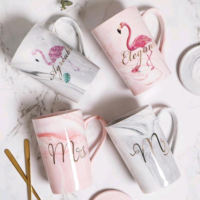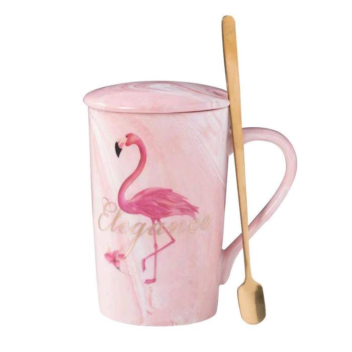 Murah gelas keramik marbel motif flamingo - Flamingo 4bu Elegan