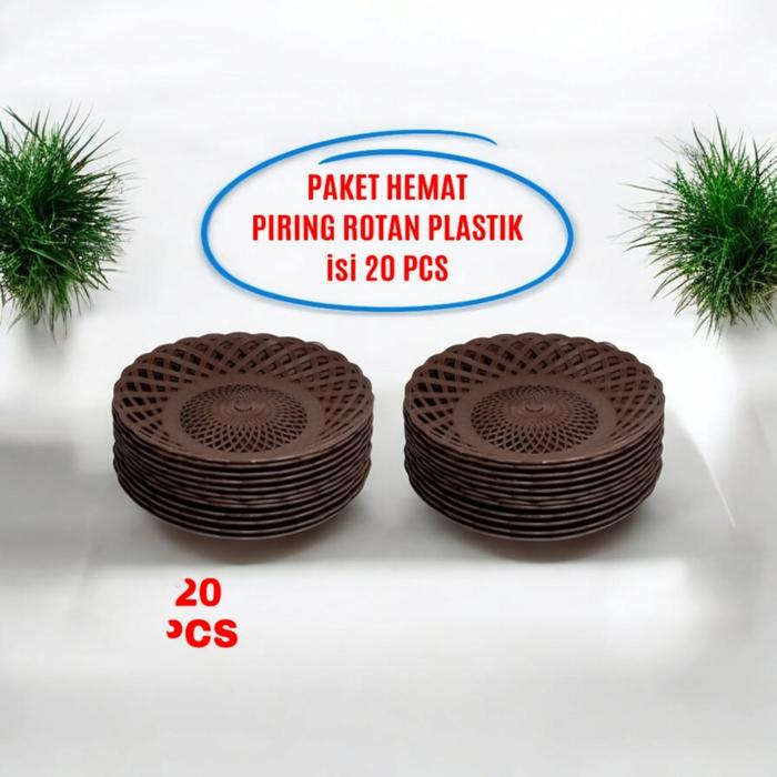 Terlaris Paket 2 Lusin Piring Rotan Plastik | Piring Rotan Anyam Kitchenware Keren