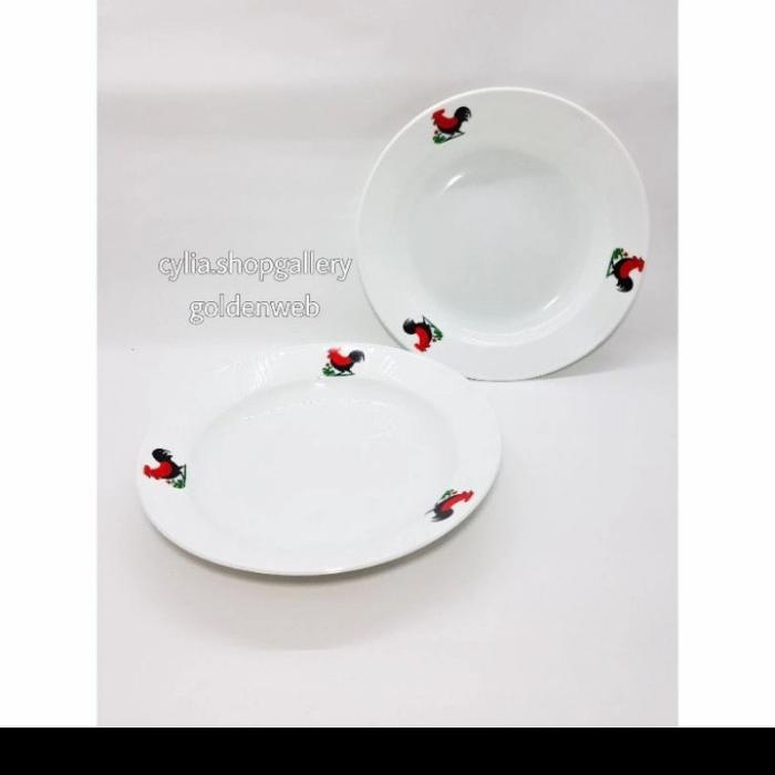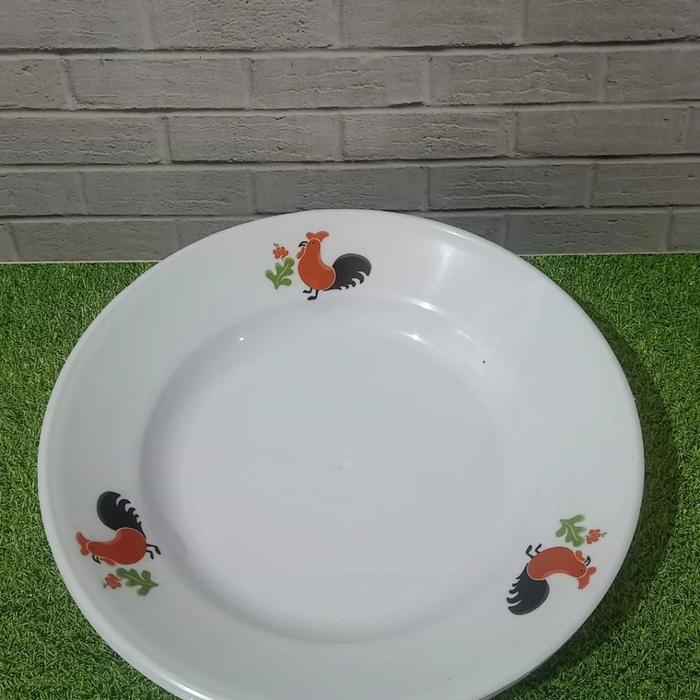 Murah (1 lusin ) piring makan Ayam bulat plastik - piring cekung 9 inch ayam jago putih - PIRING AYAM SL Keren