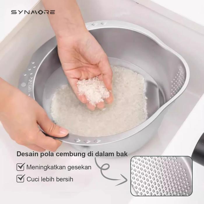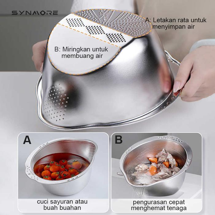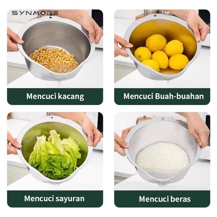 Promo Baskom Stainless Steel SUS 304 Tebal Dapur Wadah Cuci Beras Buah Sayur Baskom Dapur Bakul Saringan - Silver Elegan