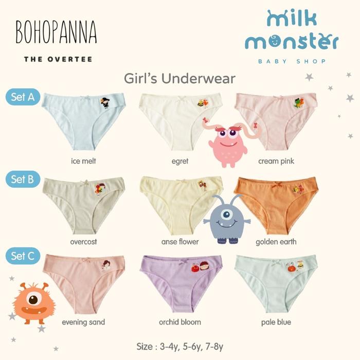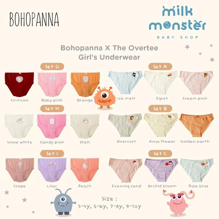 WAJIB PUNYA ! BOHOPANNA X THE OVERTEE GIRL'S UNDERWEAR/ PAKAIAN DALAM ANAK PEREMPUAN - SET A, 7-8Y ORI