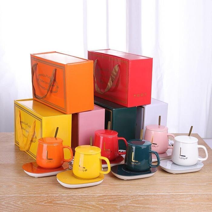 Promo Mug Cangkir Elektrik Set Kopi pernikahan kado ulang tahun cewek hampers lebaran idul fitri 2025 - merah Keren