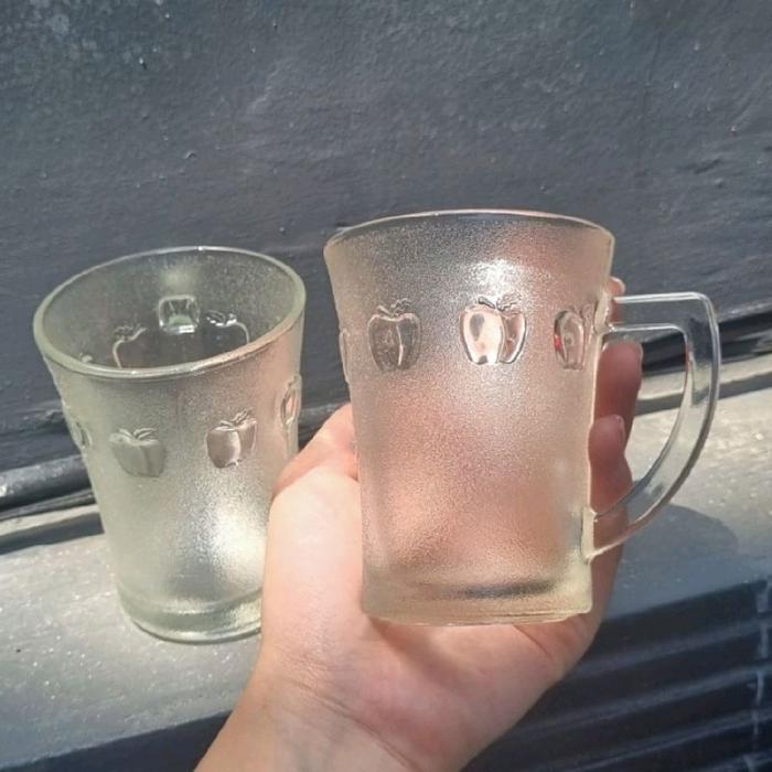 Murah ( 6 PCS ) Gelas Kaca Gagang Motif / Gelas Minum / Gelas Kopi / Gelas My Coffe 210 ml Keren