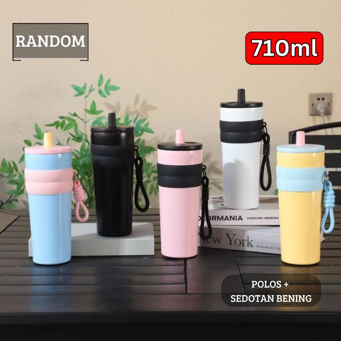Terlaris Tumbler Mug Stainless Steel Gradasi 710ml / Gelas Minum Sedotan / Mug Sporty With Straw Lid - NEW RANDOM Elegan