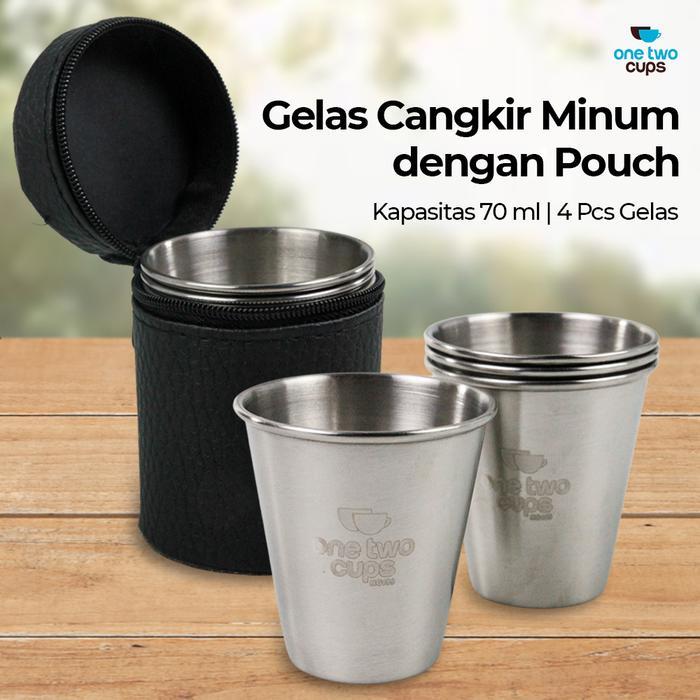 Murah One Two Cups Gelas Cangkir Minum 70 ml 4PCS with Pouch - HG189 - Spesifikasi Elegan