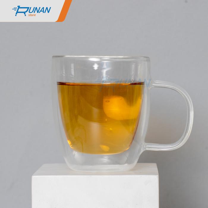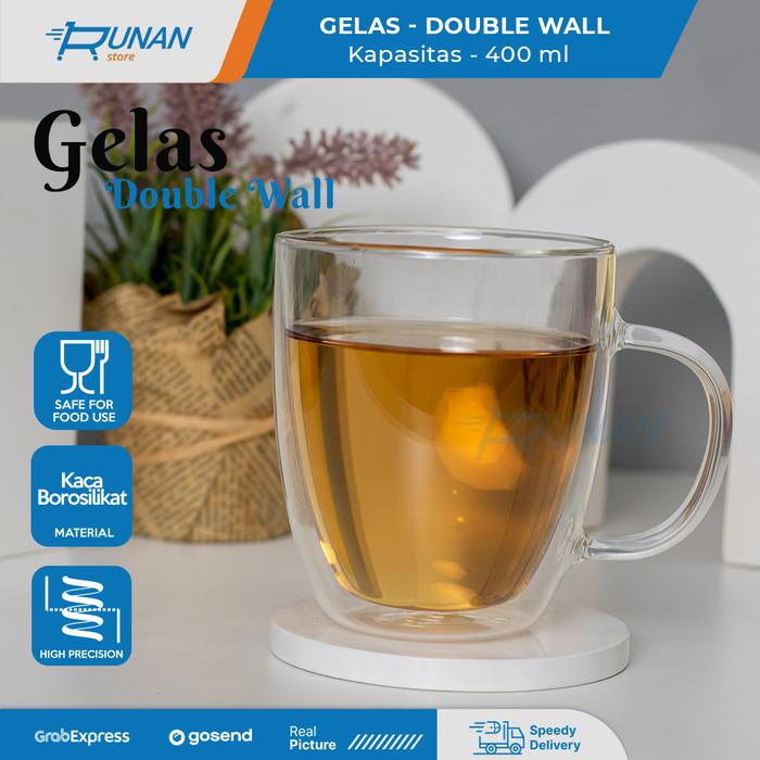 Murah Gelas Double Wall Kopi Teh 400 ml Gelas Anti Panas Kaca Dengan Handle - Warna Keren