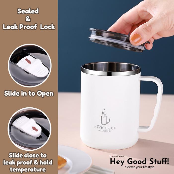 Murah MUG GELAS KOPI TEH AESTHETIC STAINLESS STEEL 304 ANTI TUMPAH 500ML - Diamond White Elegan